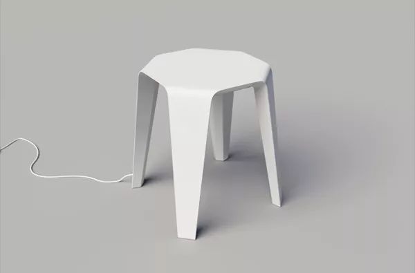 在白天,Shrine 就是一個(gè)簡(jiǎn)單的白色板凳,和其他板凳一樣,你可以坐在上面也可以在上面擺放一些小物品。但夜晚,它就有著單特的功能:夜燈。開關(guān)設(shè)置在連有電源線的凳腿上,輕輕觸碰凳腿,就能開啟 Shrine,內(nèi)置的 LED 小燈泡,能夠照亮其周圍,但不會(huì)導(dǎo)致房間過亮。柔和的燈光由板凳底面?zhèn)飨虻匕澹瑺I造了祥和靜謐的夜晚環(huán)境。
