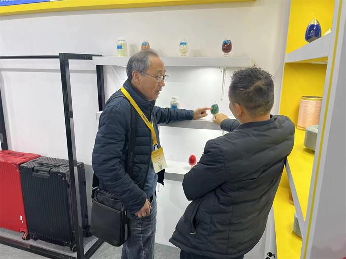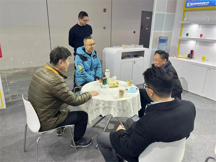 氣氛高漲,客流如織,展會現(xiàn)場,留下了諸多觀展商與金彩新材料的團隊成員熱切進行商貿(mào)洽談的身影。