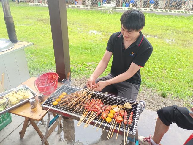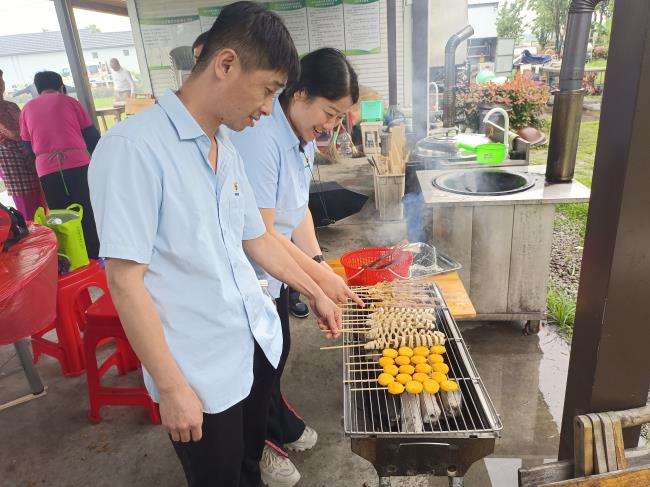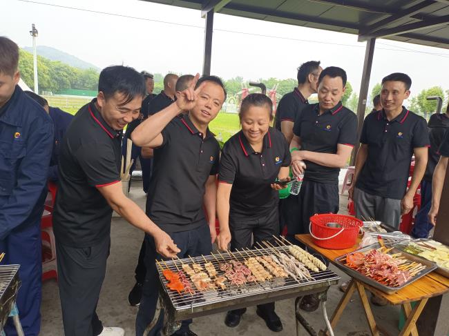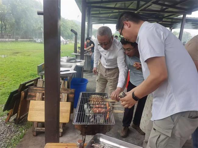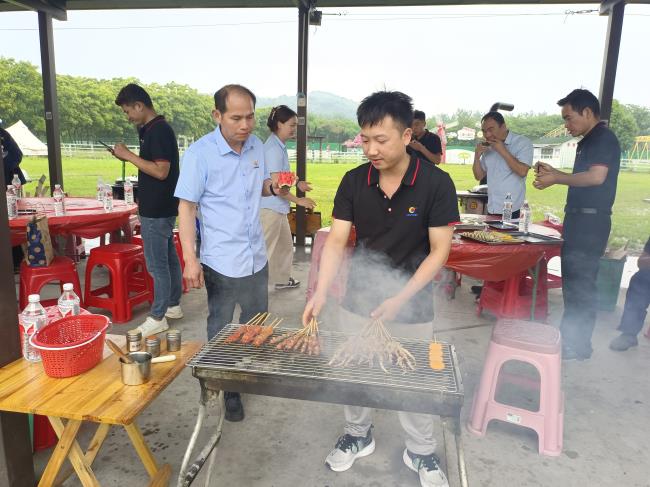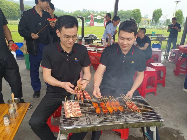 培訓結(jié)束后,大家有說有笑,圍坐在一起準備聚餐燒烤,其樂融融,隨著炭火的點燃,香氣四溢的燒烤食材開始在烤架上翻滾。看著滋滋往外冒的油花,再撒上孜然,刷上燒烤醬,香味四溢~