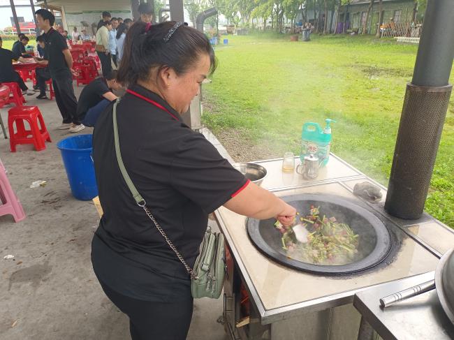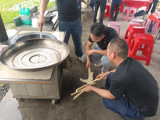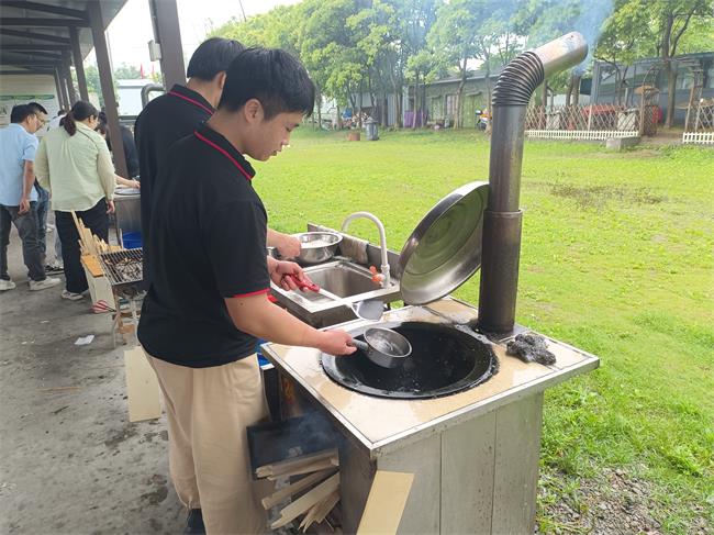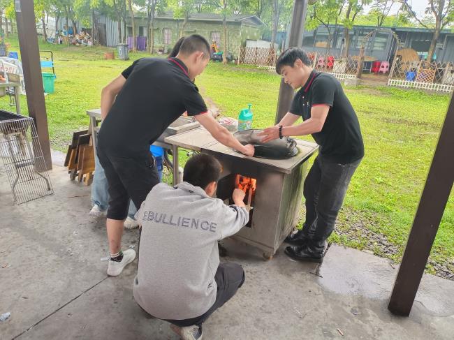 下午15點30分,大家紛紛擼起袖子,分工明確,拾柴、提水、洗鍋子、準備各類食材,等到一切準備就緒,就開始燒野飯了。