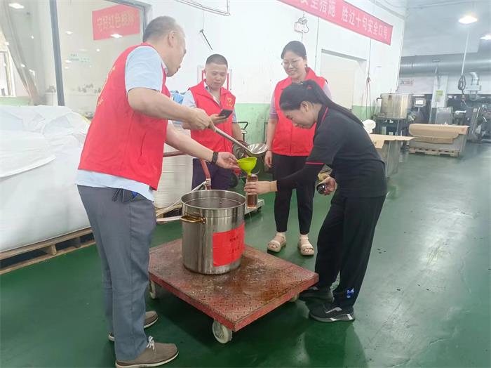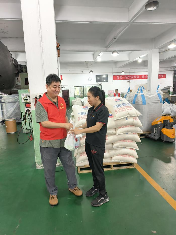 盛夏七月,熱浪襲人,為做好夏季高溫條件下員工的防暑降溫工作,切實(shí)保障公司廣大員工的身心健康,防止炎熱夏季高溫中暑,海寧市袁花鎮(zhèn)工會(huì)、浙江金彩新材料有限公司聯(lián)合黨支部、工會(huì)走進(jìn)車間送清涼,為大家送來了綠豆湯、冷飲、鹽汽水等,并發(fā)放了夏季高溫用品,讓員工們?cè)诜泵Φ墓ぷ髦懈惺艿皆ㄦ?zhèn)工會(huì)、公司對(duì)大家真誠的關(guān)懷與關(guān)愛,并感謝大家所付出的辛勤勞動(dòng)。