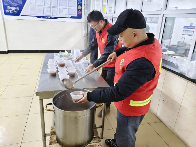 1月7日一大早,金彩聯(lián)合黨支部、工會(huì)就忙碌起來(lái),將提前準(zhǔn)備好的臘八食材放進(jìn)煮鍋中,開(kāi)始精心熬制,不一會(huì)就粥香四溢。等到就餐時(shí)間,將一碗碗精心熬制的臘八粥送到員工手中,把新年的美好祝愿送到員工的心坎里。