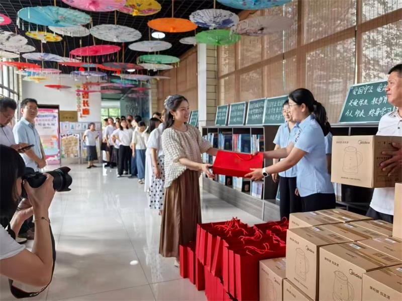 隨后,慰問小組與學(xué)校教師代表一同舉行了簡單而溫馨的禮物贈(zèng)送儀式。每份禮物都承載著浙江金彩對教師群體的貼心關(guān)懷。當(dāng)教師們接過禮物時(shí),臉上洋溢著幸福的笑容。